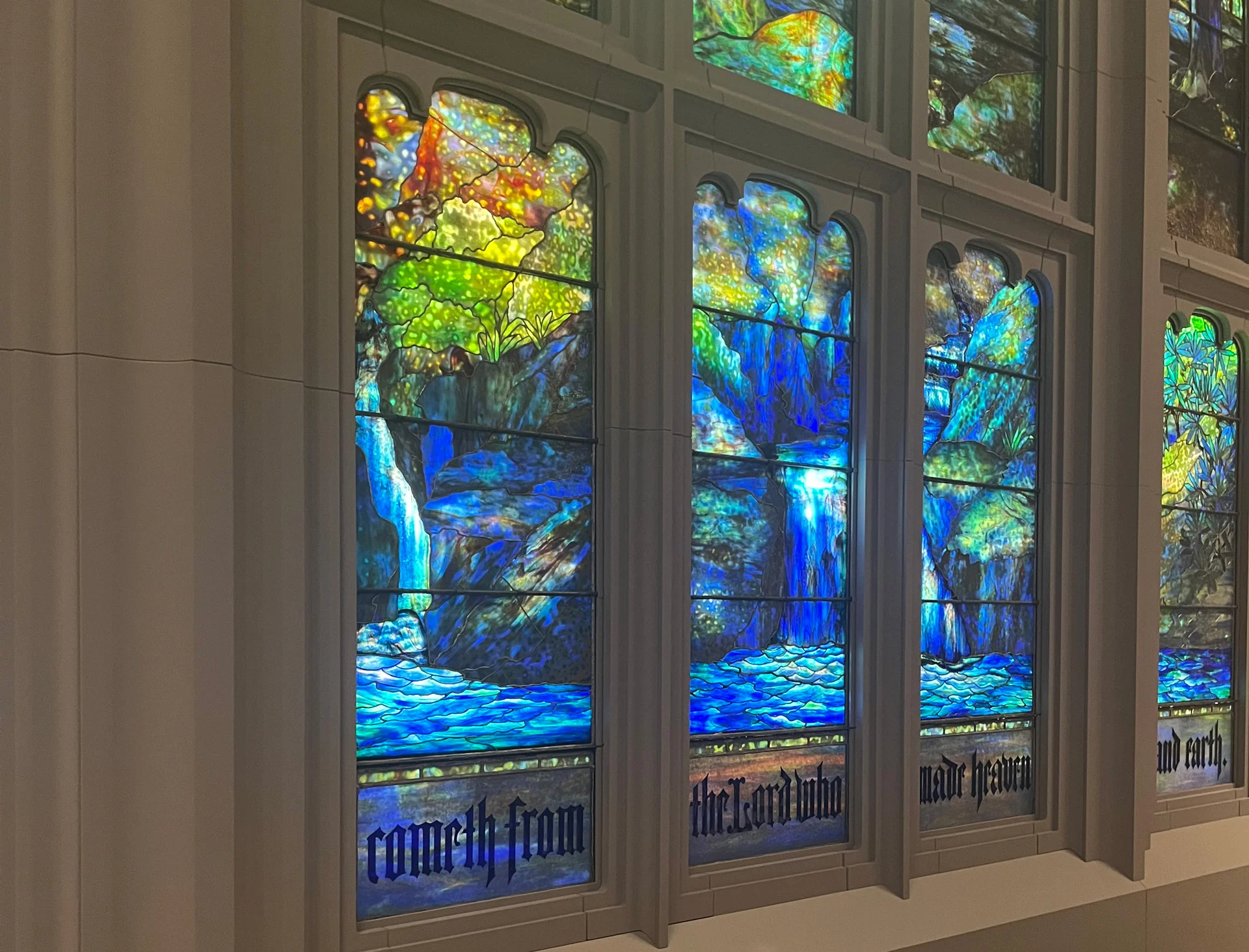 Composed of 48 richly varied glass panels, the window depicts a luminous landscape inspired by the Hartwell family home near Mount Chocorua in New Hampshire, capturing the fleeting beauty of light, water, and nature. Installed in the Henry Crown Gallery atop the Woman’s Board Grand Staircase near the Michigan Avenue entrance, the window welcomes visitors with radiant color and atmosphere.