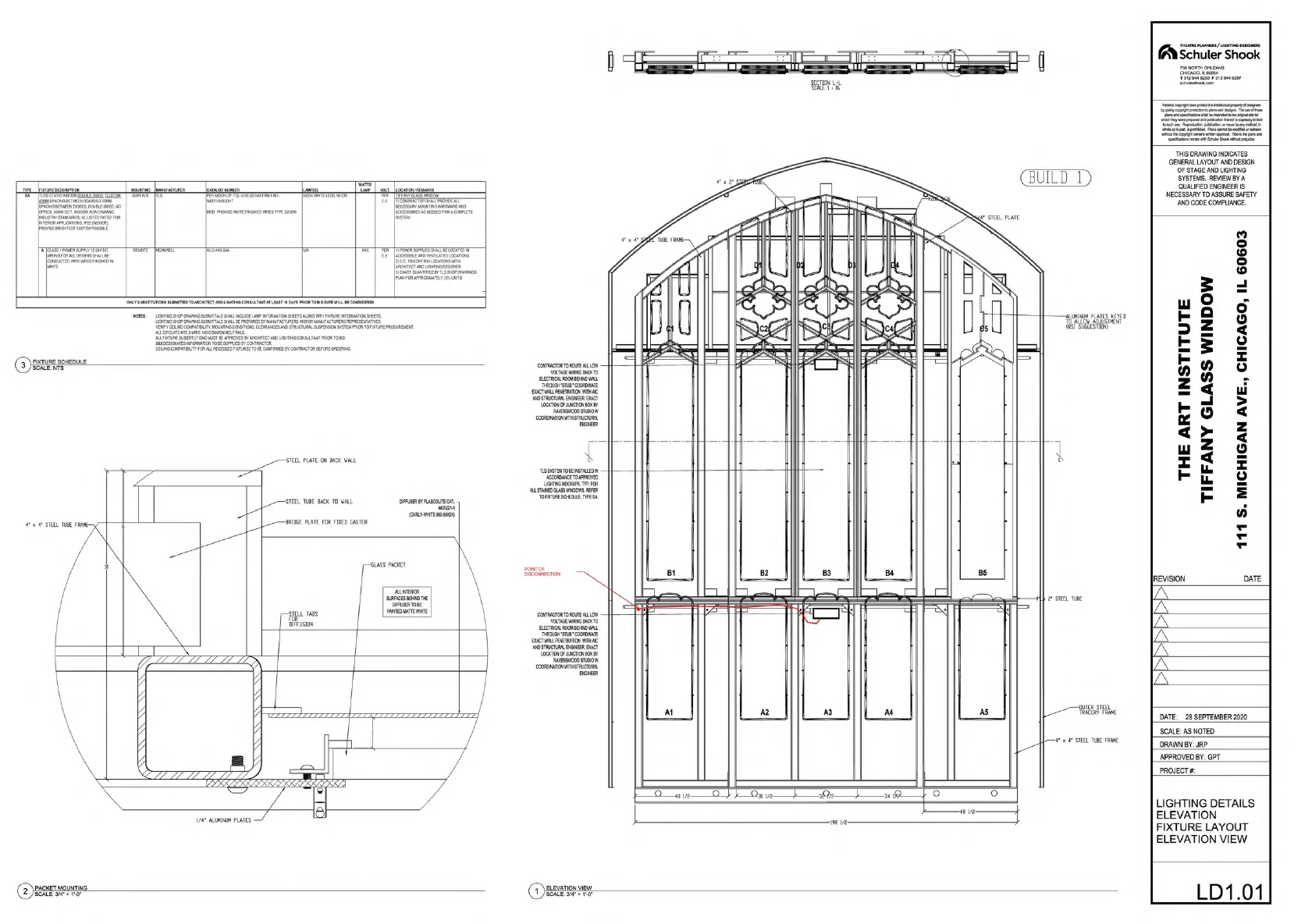 - Custom engineering drawings document precise alignment with the window’s vertical mullions, ensuring even illumination across figurative and landscape sections.