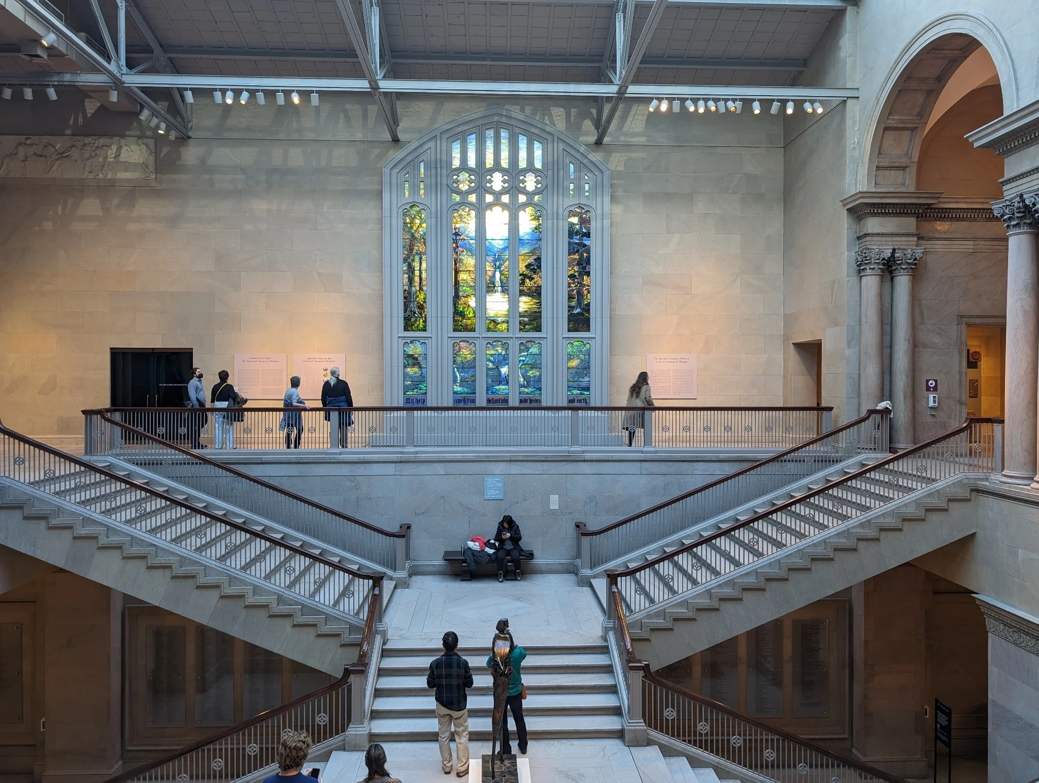 The Hartwell Memorial Window is a monumental stained, glass work by Tiffany Studios, installed in a prominent stair hall at the Art Institute of Chicago. While historically designed to be animated by natural daylight, the window’s interior placement and architectural constraints limited consistent illumination.