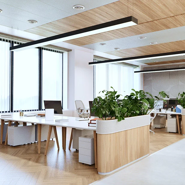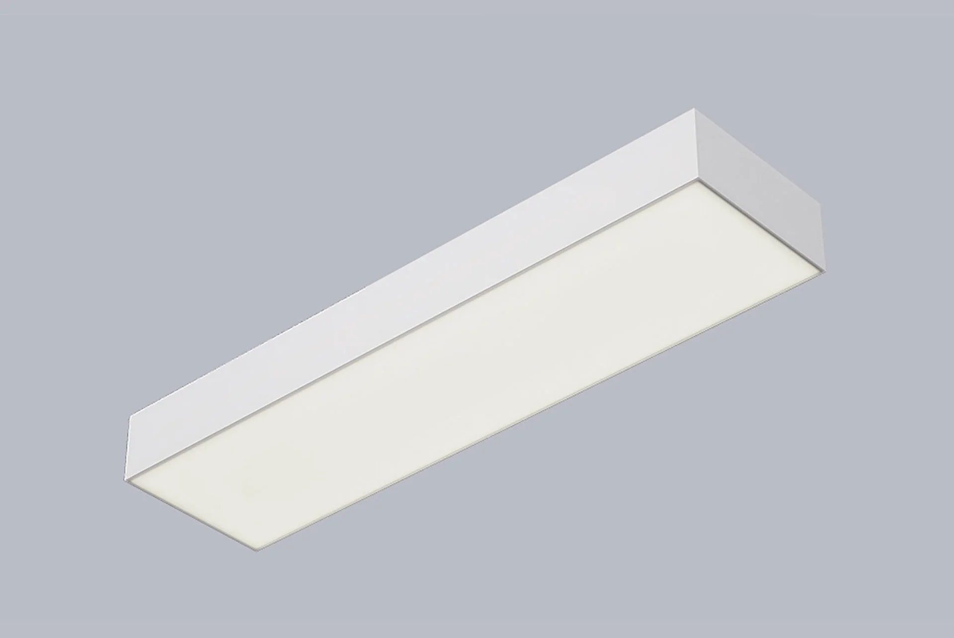 Linear fixture comes in standardized sizes and configurations, offering a sleek, modern aesthetic. Its seamless, continuous diffuser ensures uniform illumination without any gaps. Shapes are available in standardized sizes and configurations.