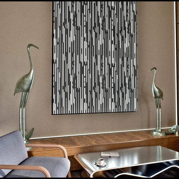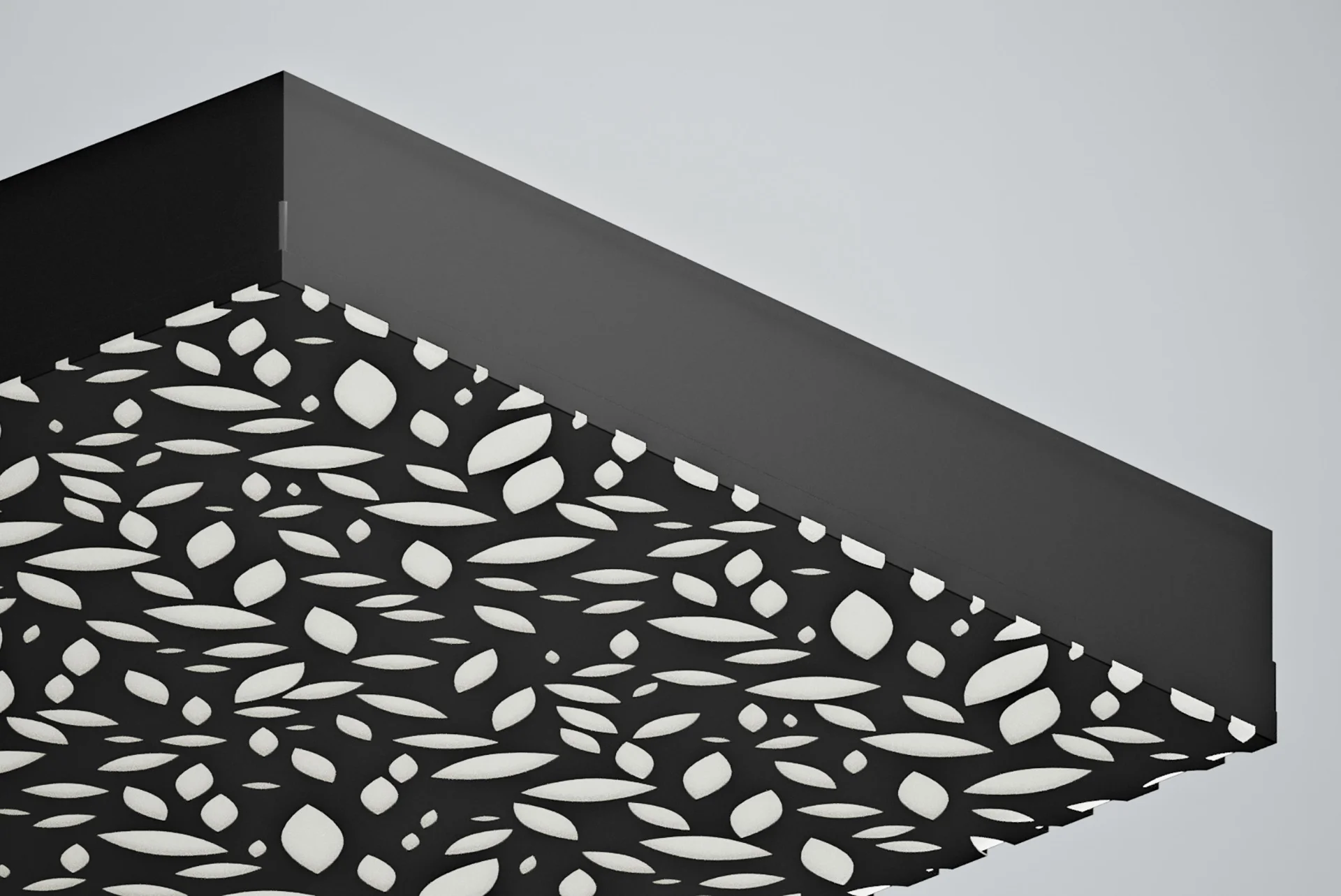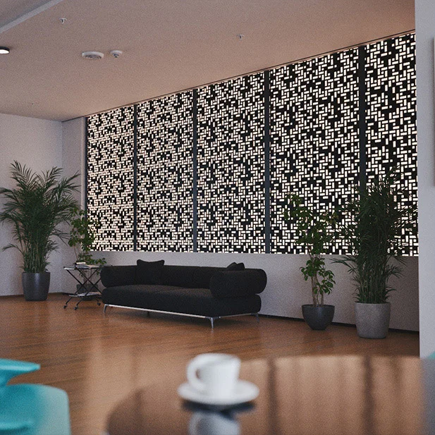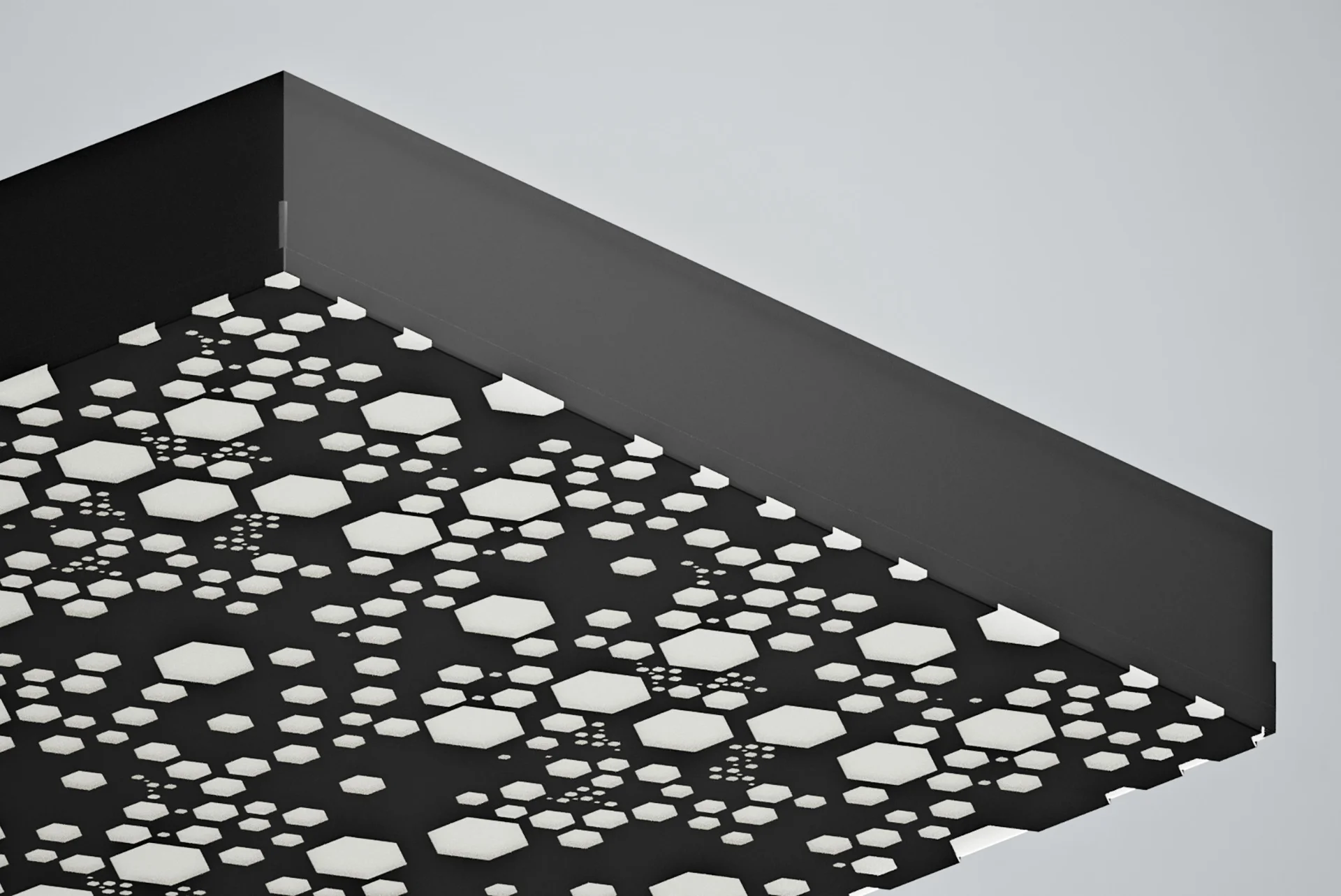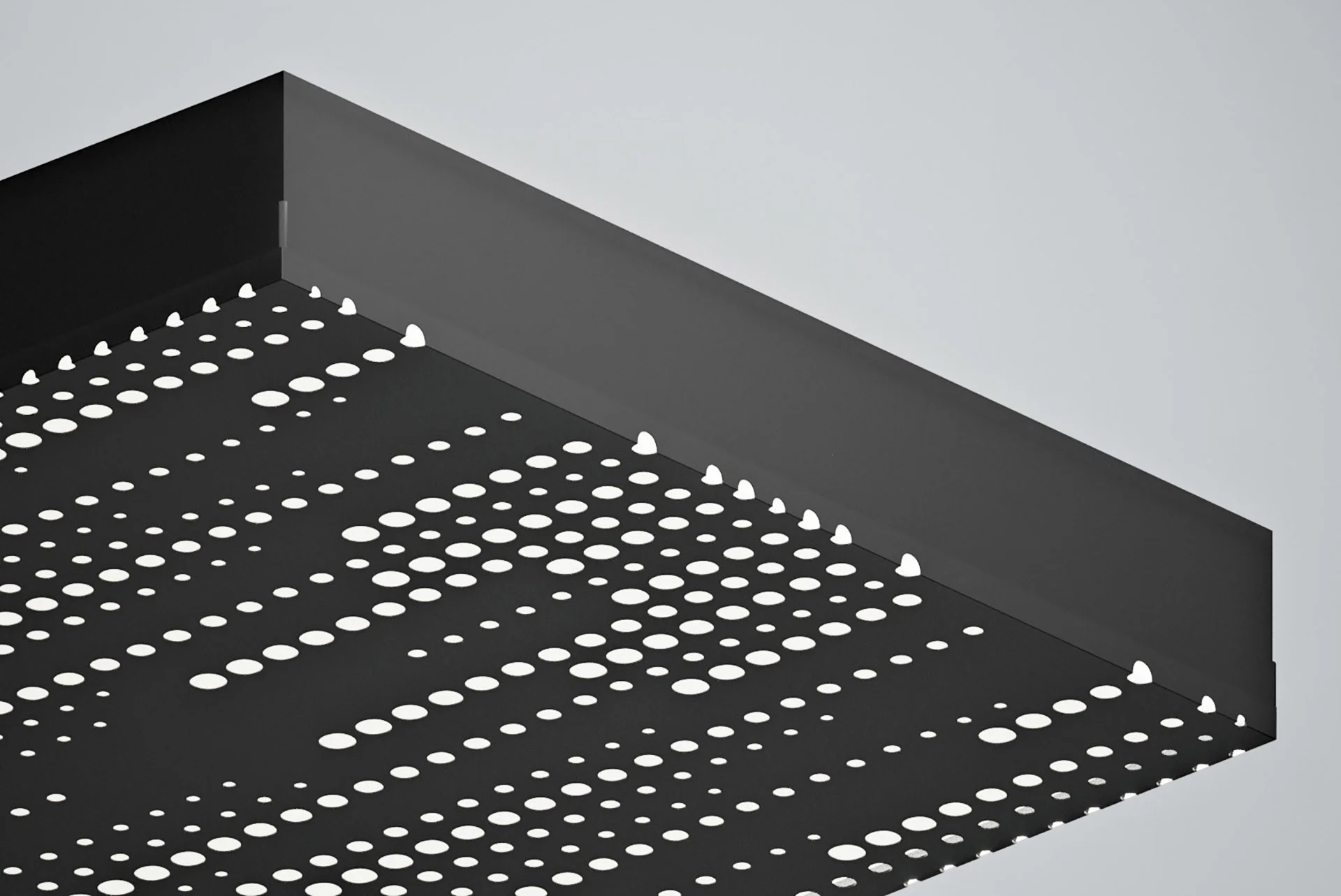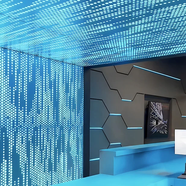 Our illuminated perforated metal panels feature a fullyenclosed, all-in-one system integrated with the award-winning TLS Technology. Designed with patented magnetic clips for effortless installation and removal, they provide convenient access to the lighting engine and components. Customizable metal panel patterns are available upon request.