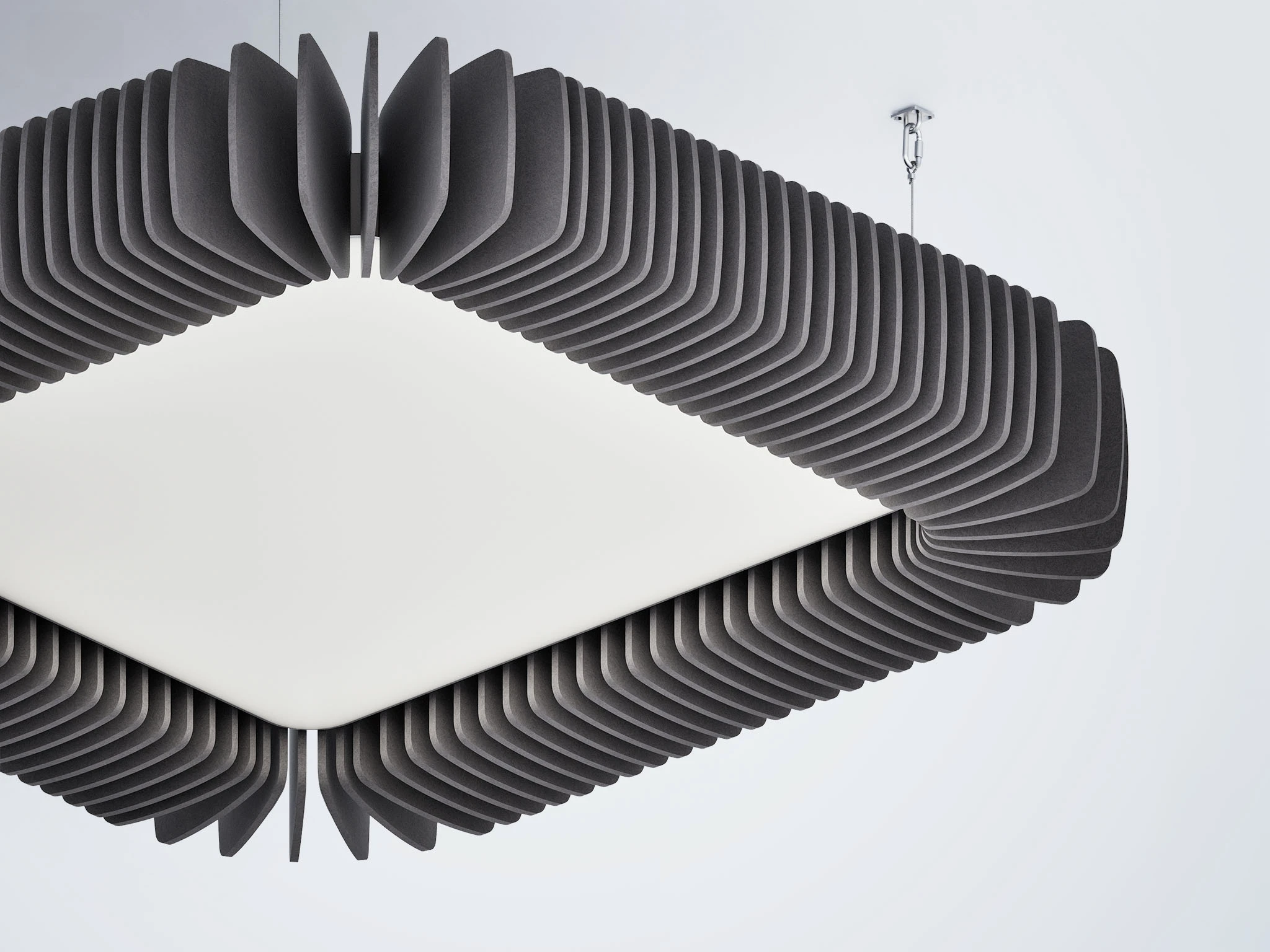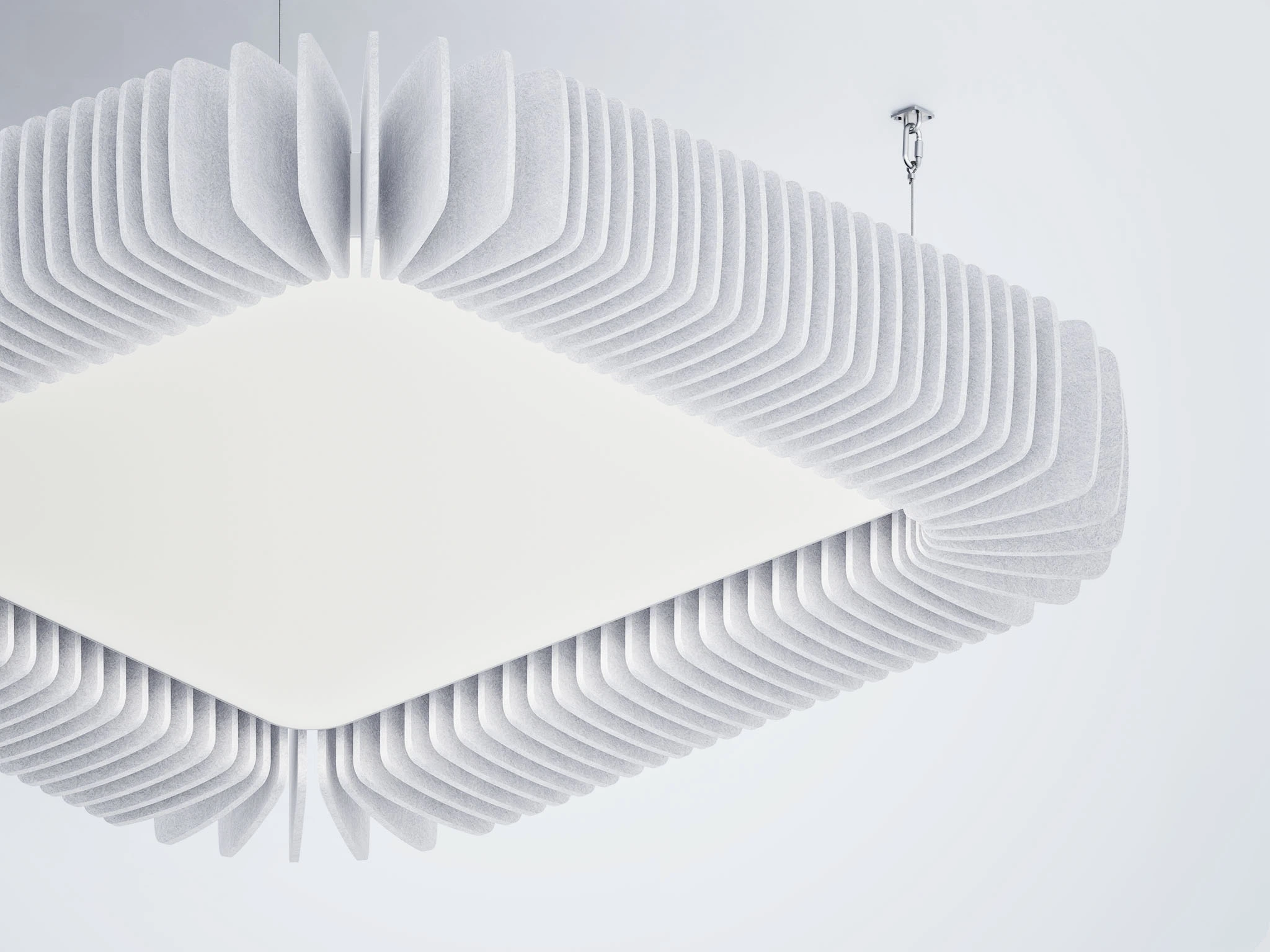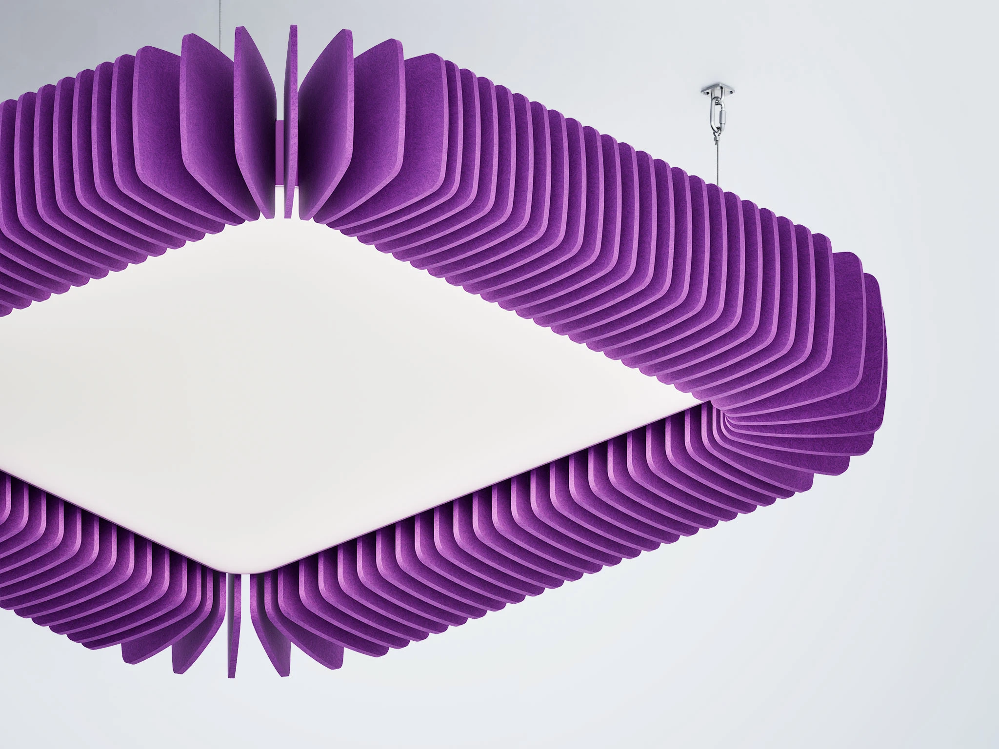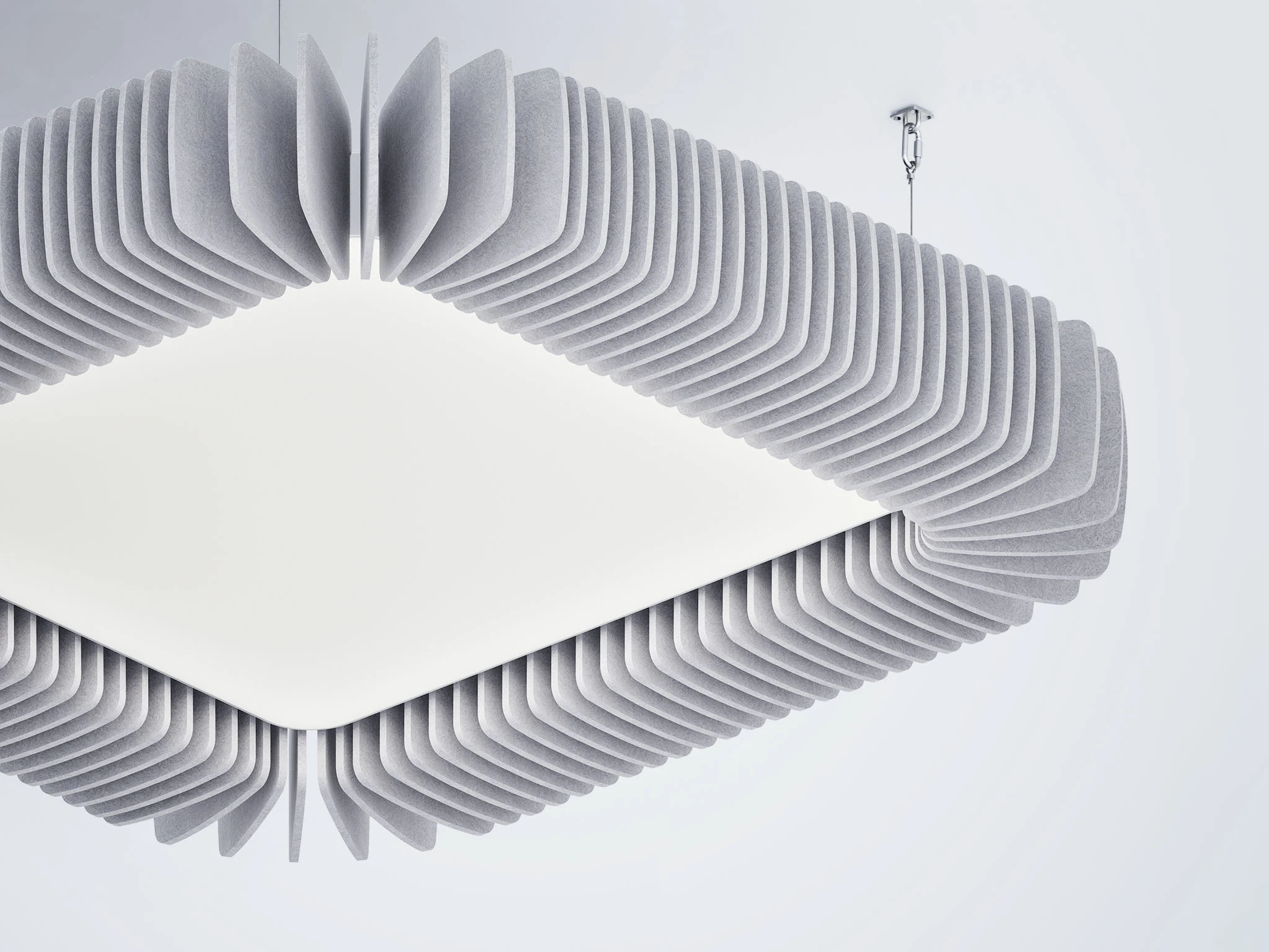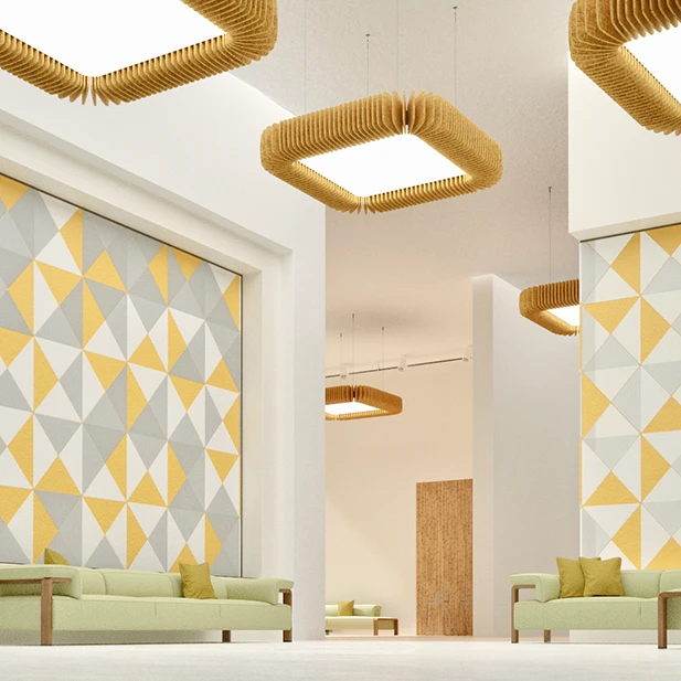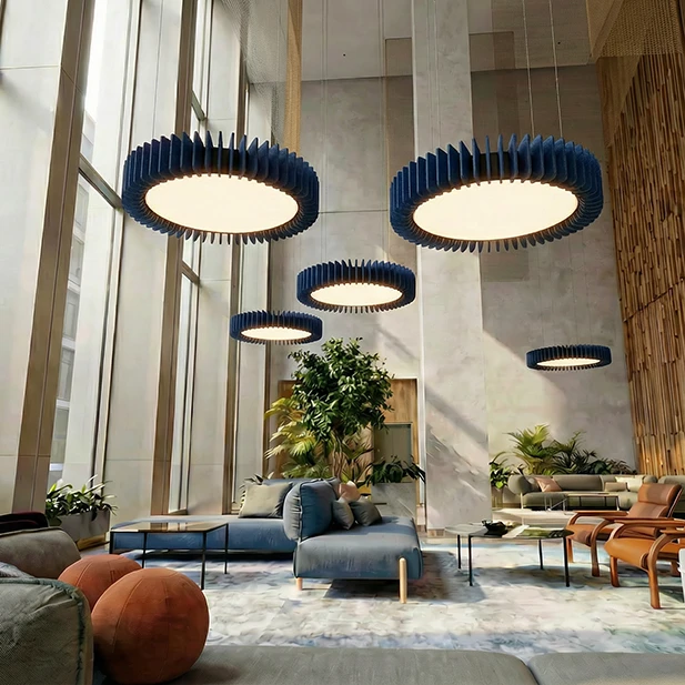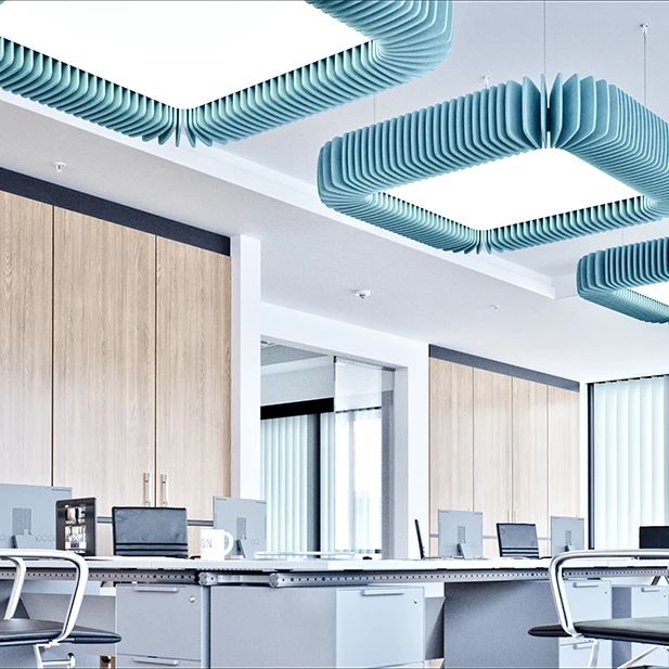 Pinna™ est doté d’ailettes verticales en feutre acoustique de polyester (PET) haut de gamme et d’un éclairage DEL intégré, offrant un équilibre acoustique dynamique pour les bureaux ouverts et les intérieurs de grand volume.