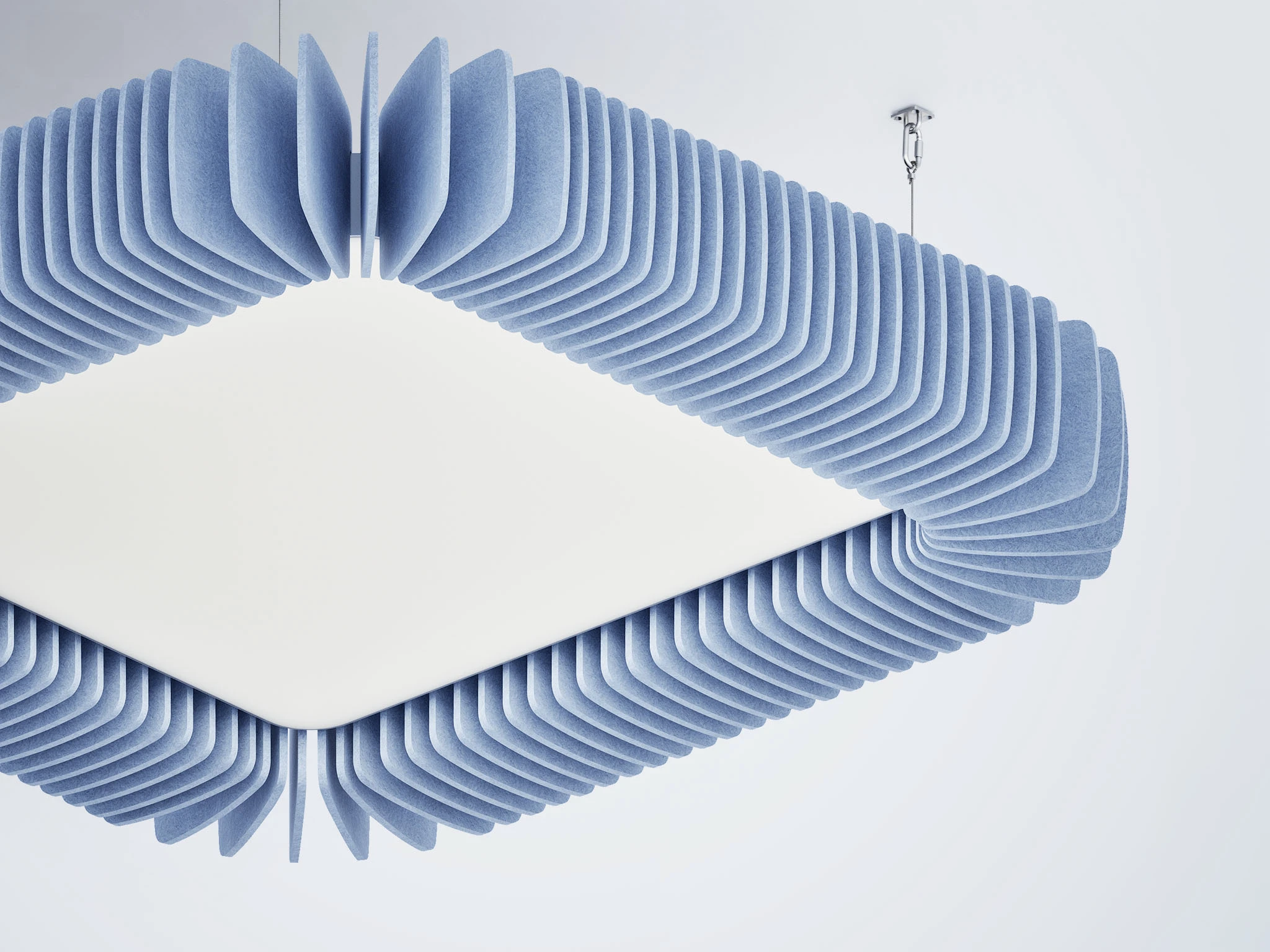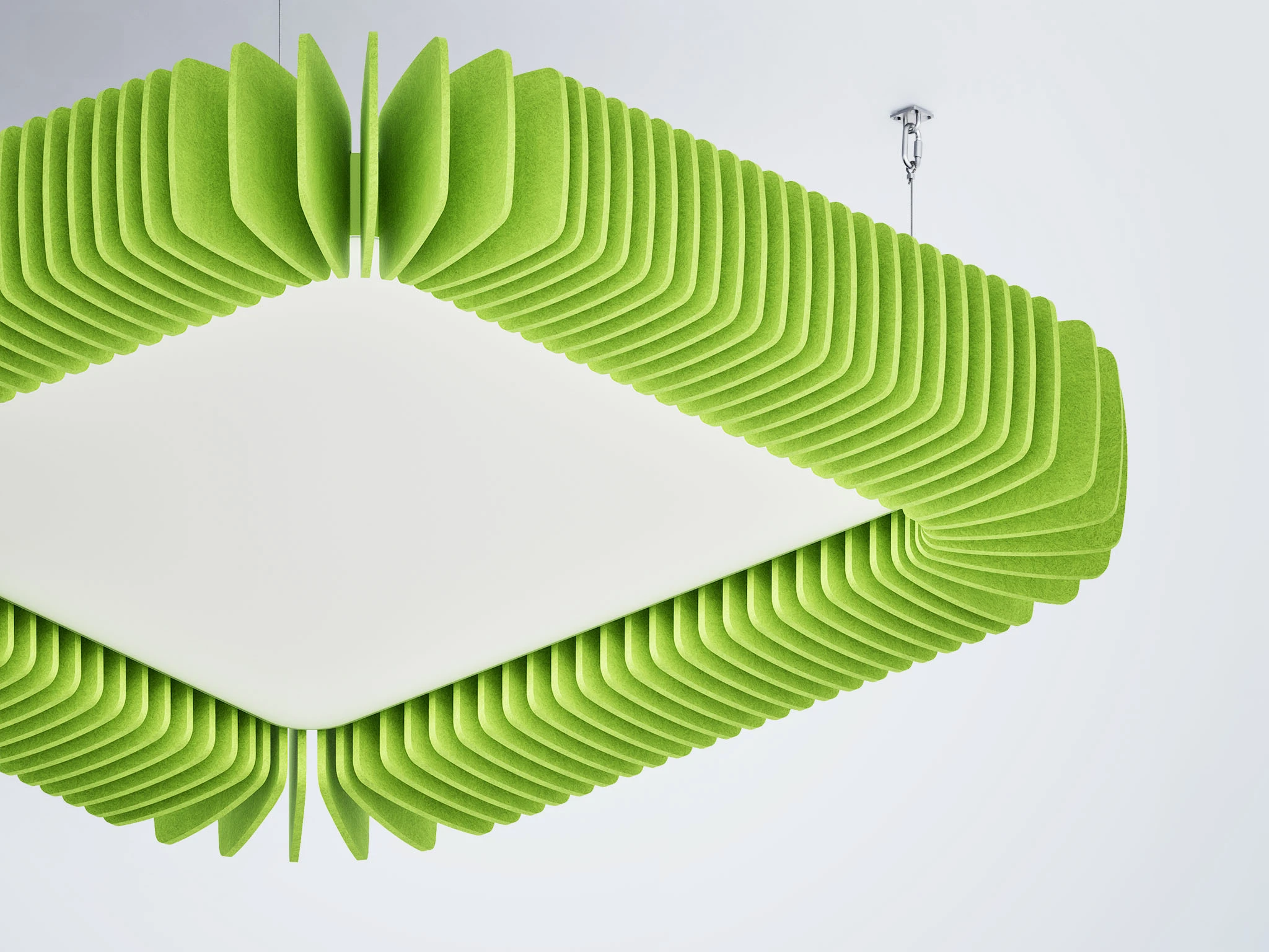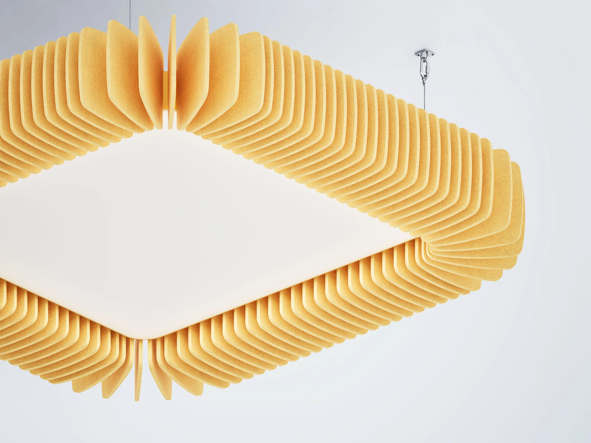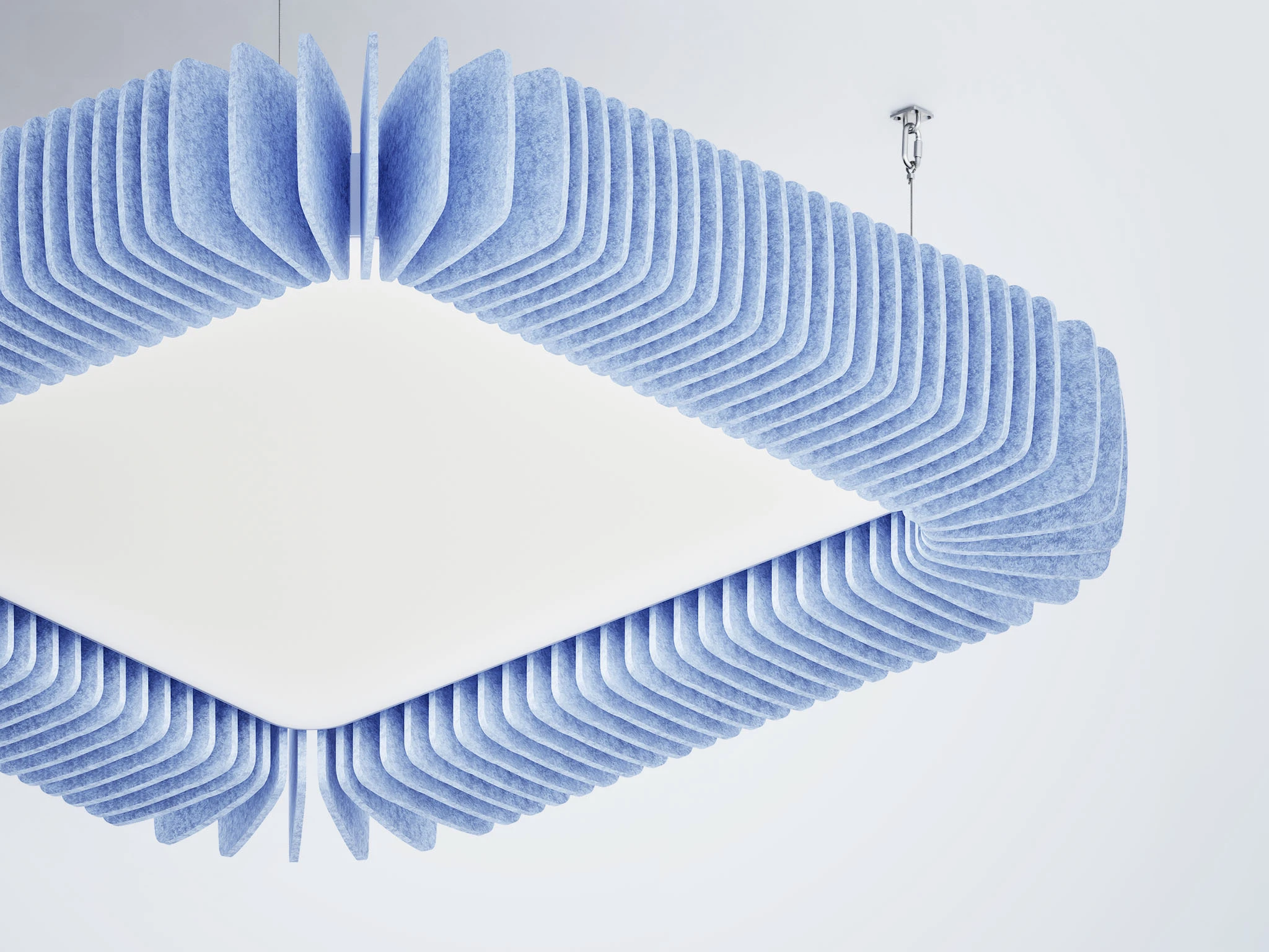 Pinna™ est doté d’ailettes verticales en feutre acoustique de polyester (PET) haut de gamme et d’un éclairage DEL intégré, offrant un équilibre acoustique dynamique pour les bureaux ouverts et les intérieurs de grand volume.