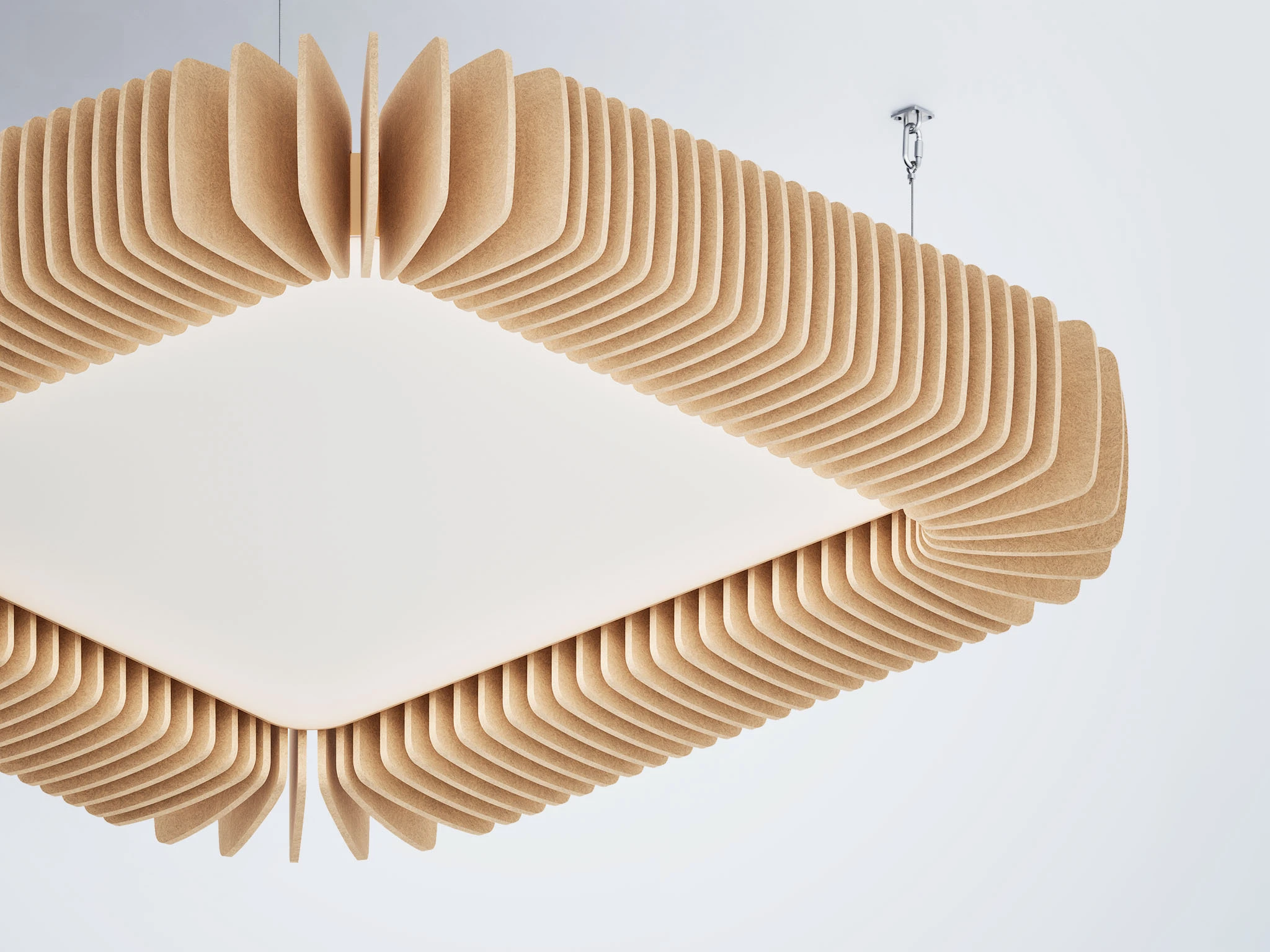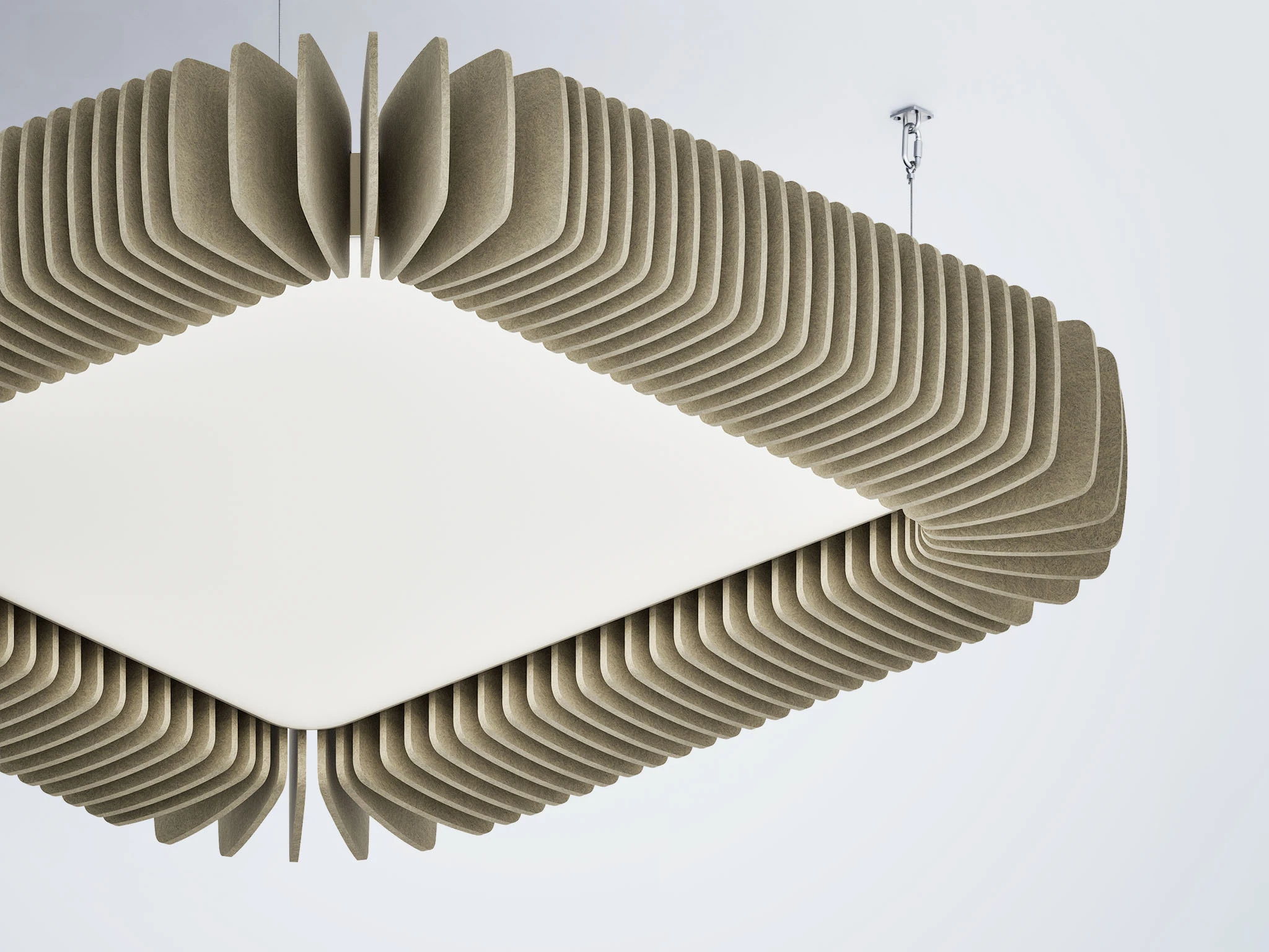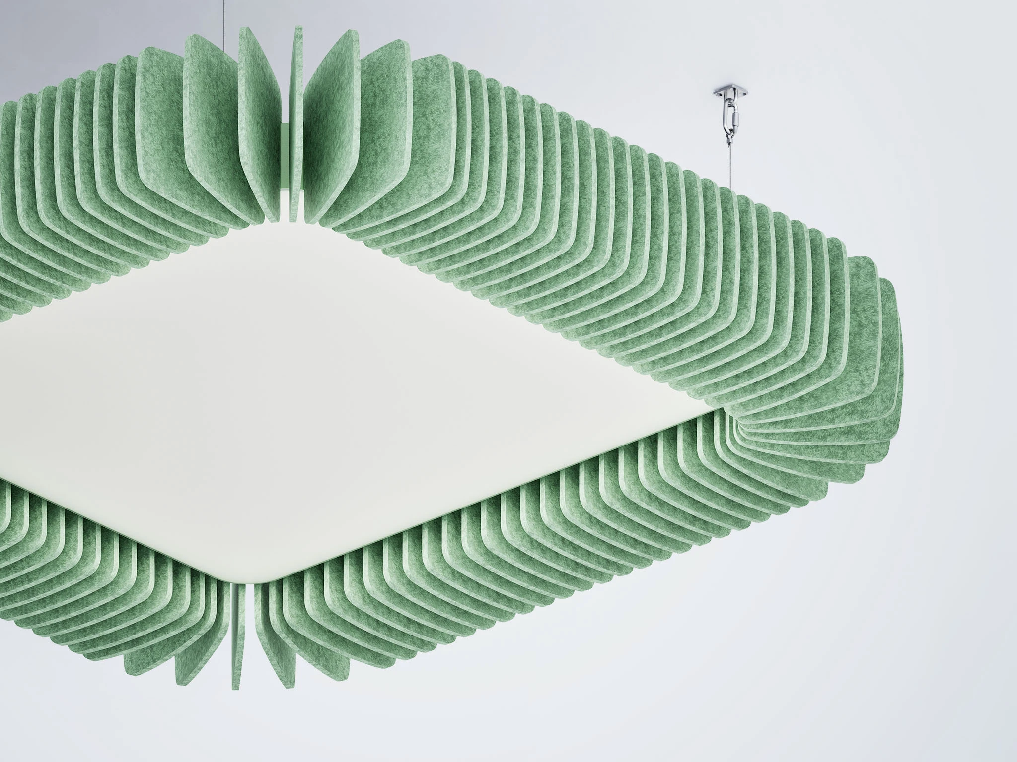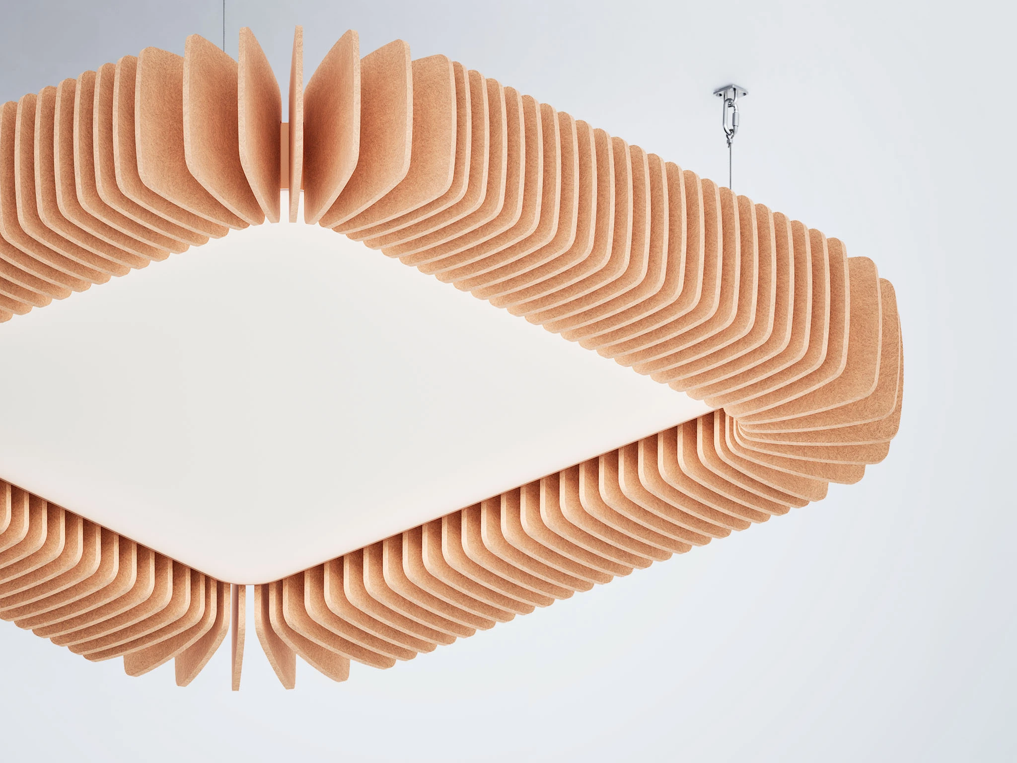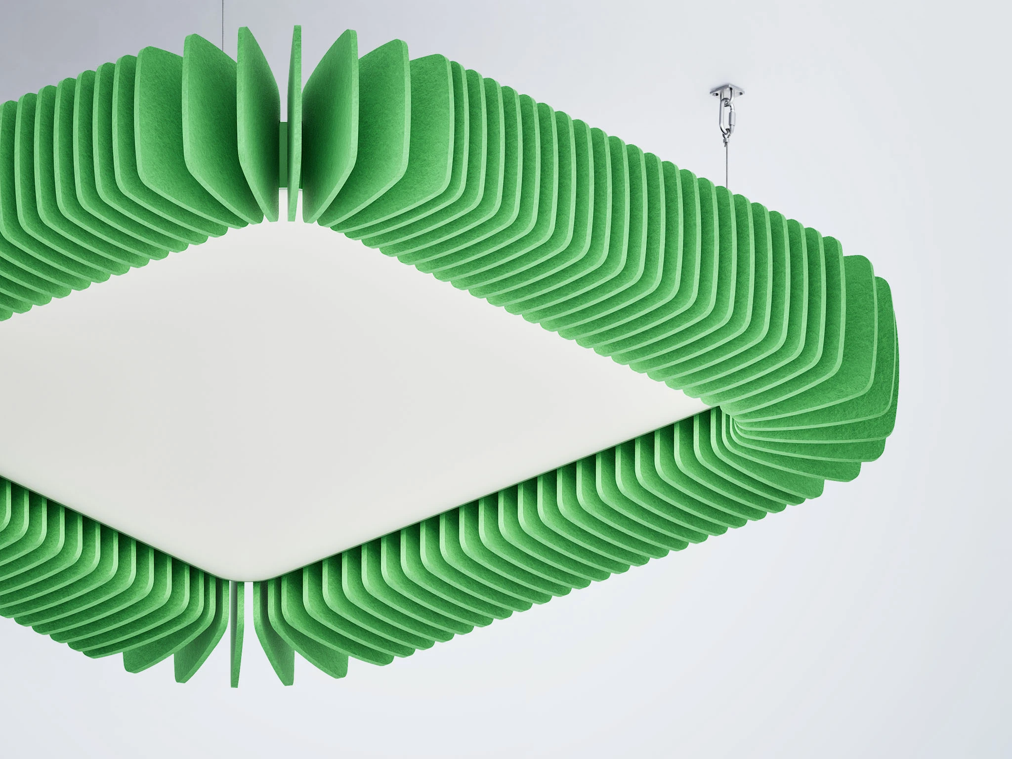 Pinna™ est doté d’ailettes verticales en feutre acoustique de polyester (PET) haut de gamme et d’un éclairage DEL intégré, offrant un équilibre acoustique dynamique pour les bureaux ouverts et les intérieurs de grand volume.