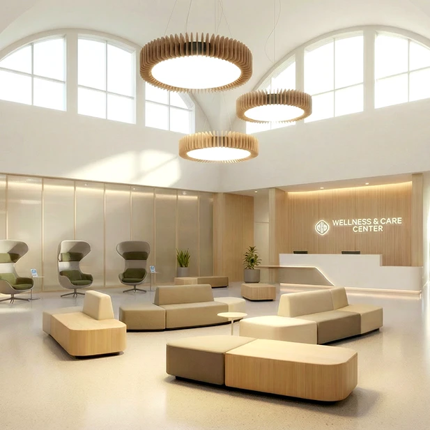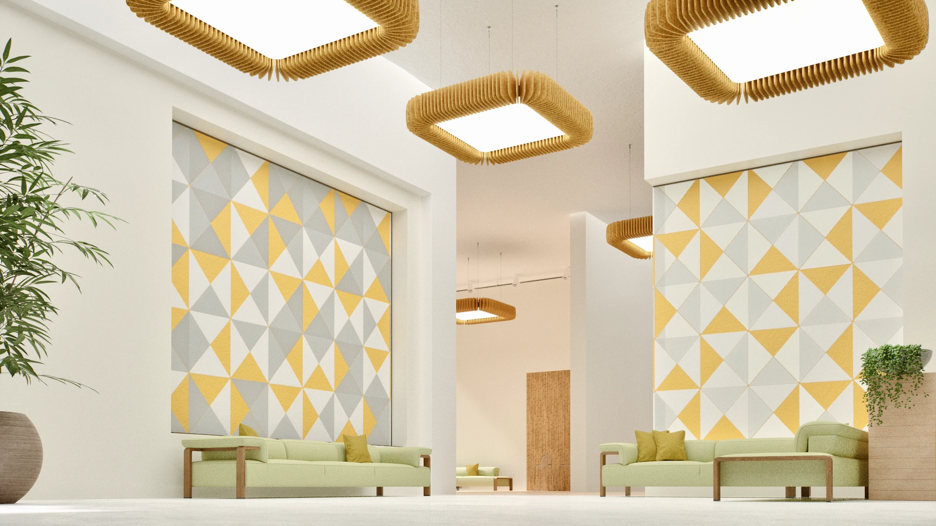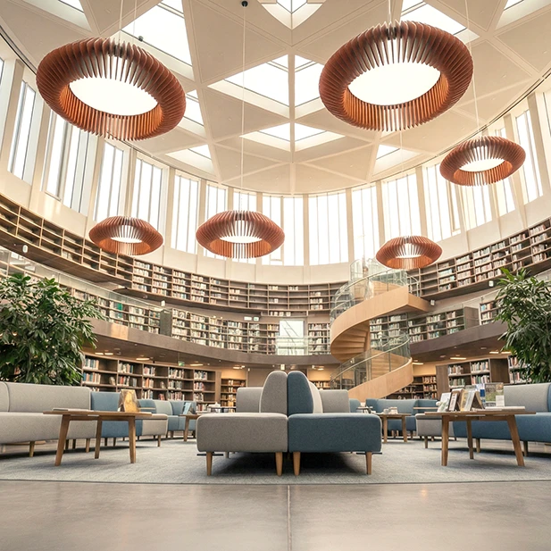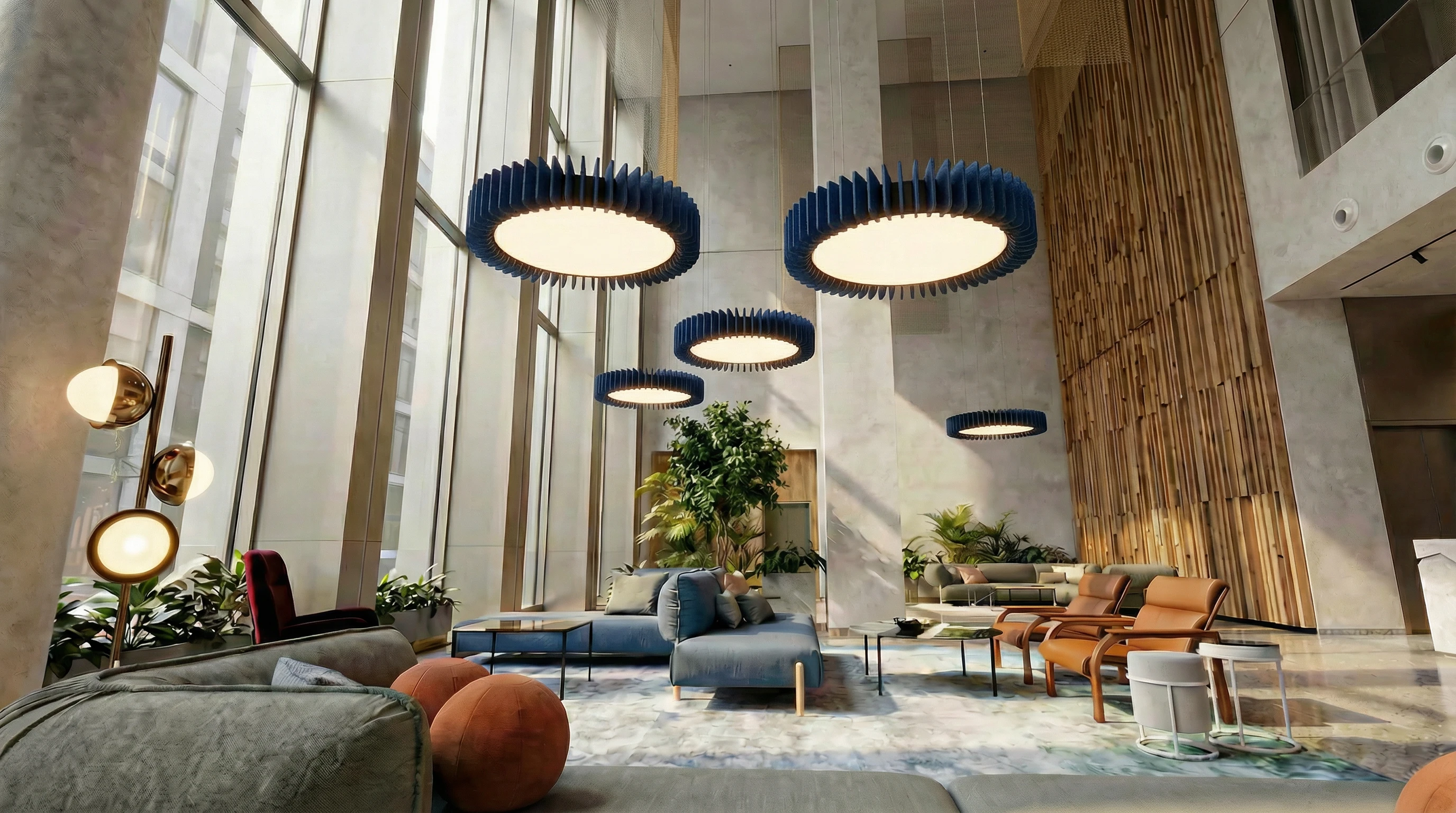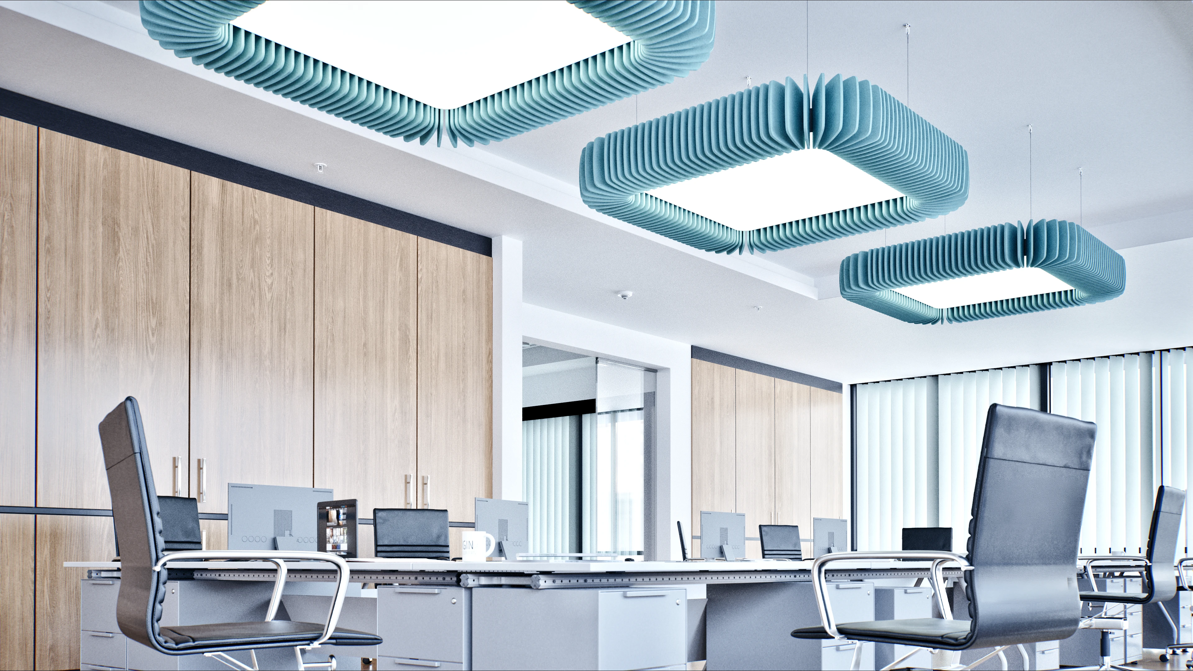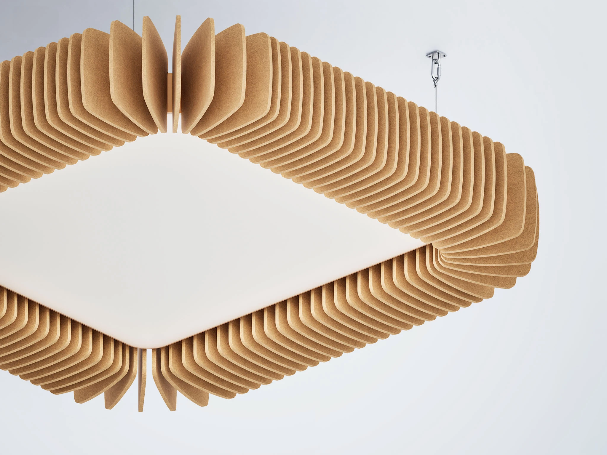 Pinna™ est doté d’ailettes verticales en feutre acoustique de polyester (PET) haut de gamme et d’un éclairage DEL intégré, offrant un équilibre acoustique dynamique pour les bureaux ouverts et les intérieurs de grand volume.